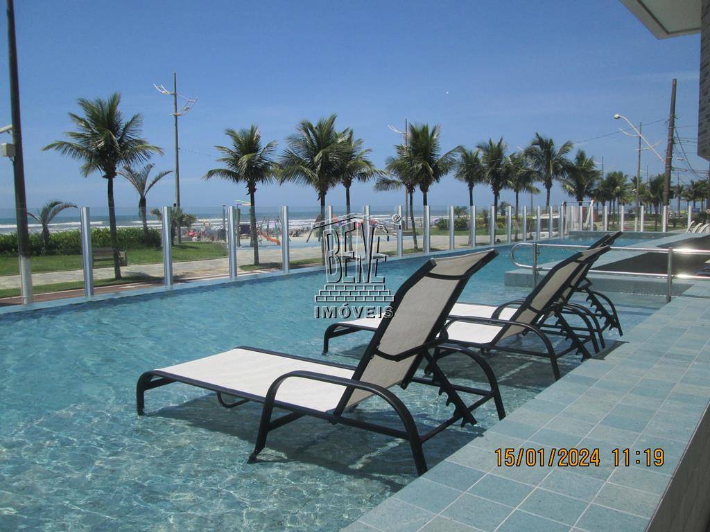 Belo apartamento em prédio frente mar com 2 dormitórios, sendo 1 suíte, sala com sacada, cozinha com armários planejados, área de serviços, banheiro com box lindex. Prédio com excelente infra-estrutura, portaria 24 horas, uma vaga de garagem, 2 elevadores, salão de festas, salão de jogos e piscina.