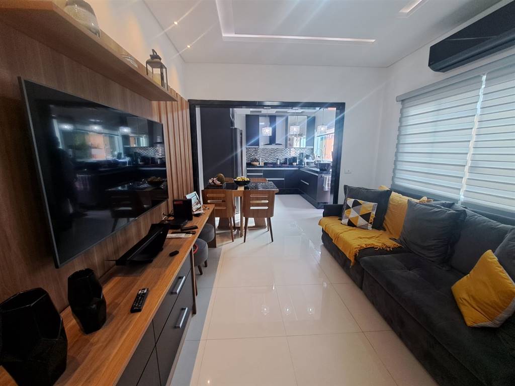 Linda casa geminada com 2 dormitorios, sendo um suite, banheiro social, lavabo, sala ampla, cozinha com moveis planejados, lavanderia, garagem para 2 carros com portao automatico, piscina. Linda casa geminada com 2 dormitorios, sendo um suite, banheiro so
