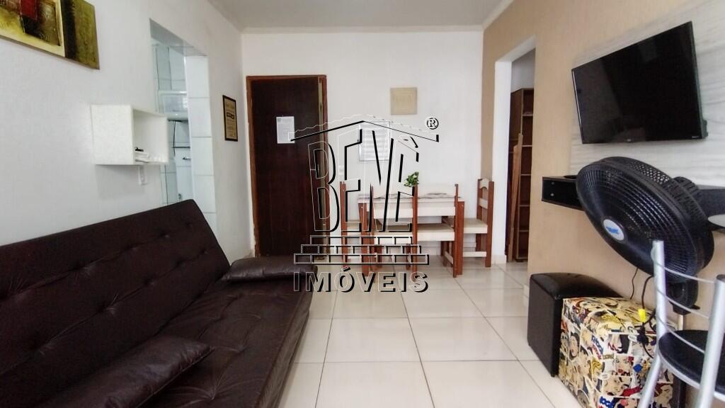 Apartamento em prédio frente mar, 1 dormitório, sala, cozinha, área de serviços, banheiro social, prédio com portaria diurna, 2 elevadores, churrasqueira no terraço e uma vaga de garagem.